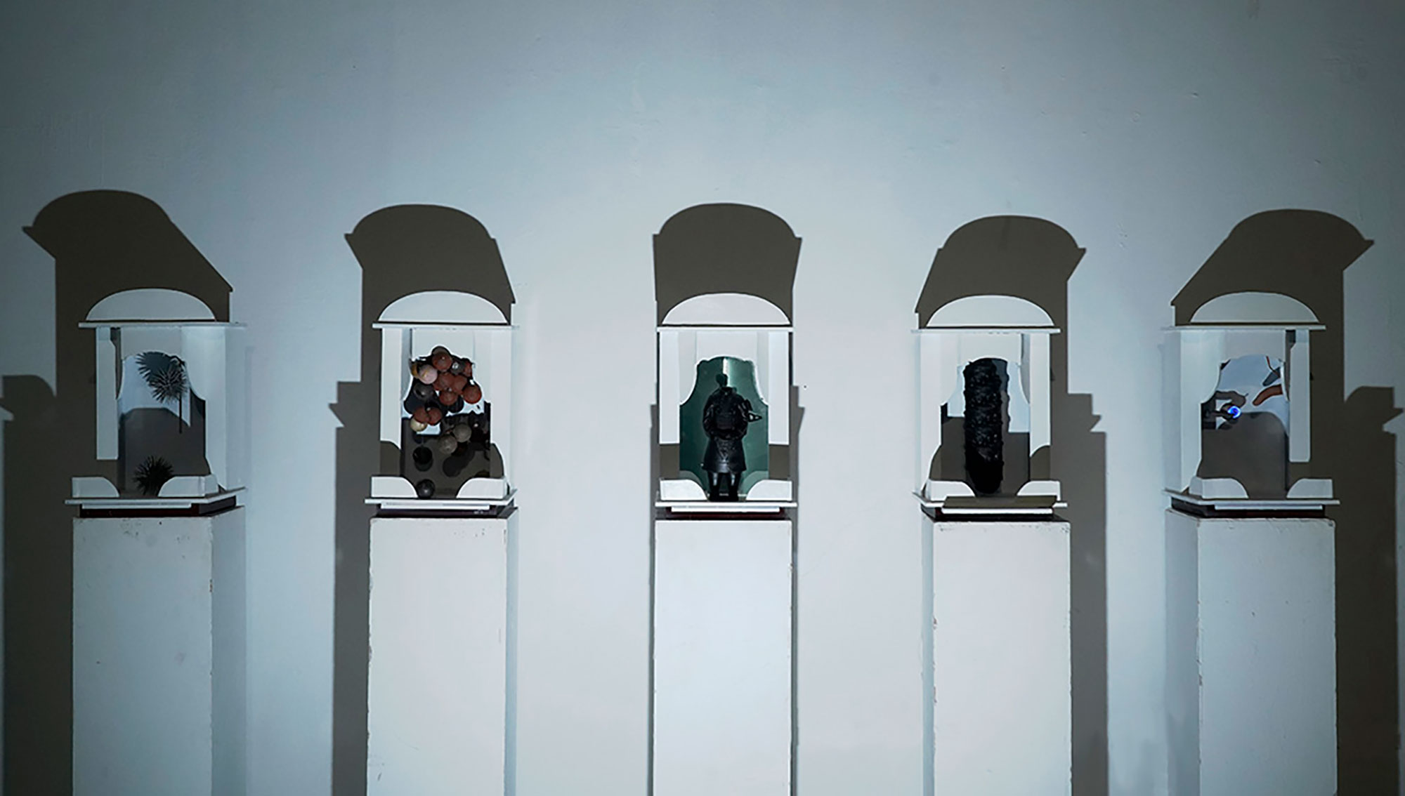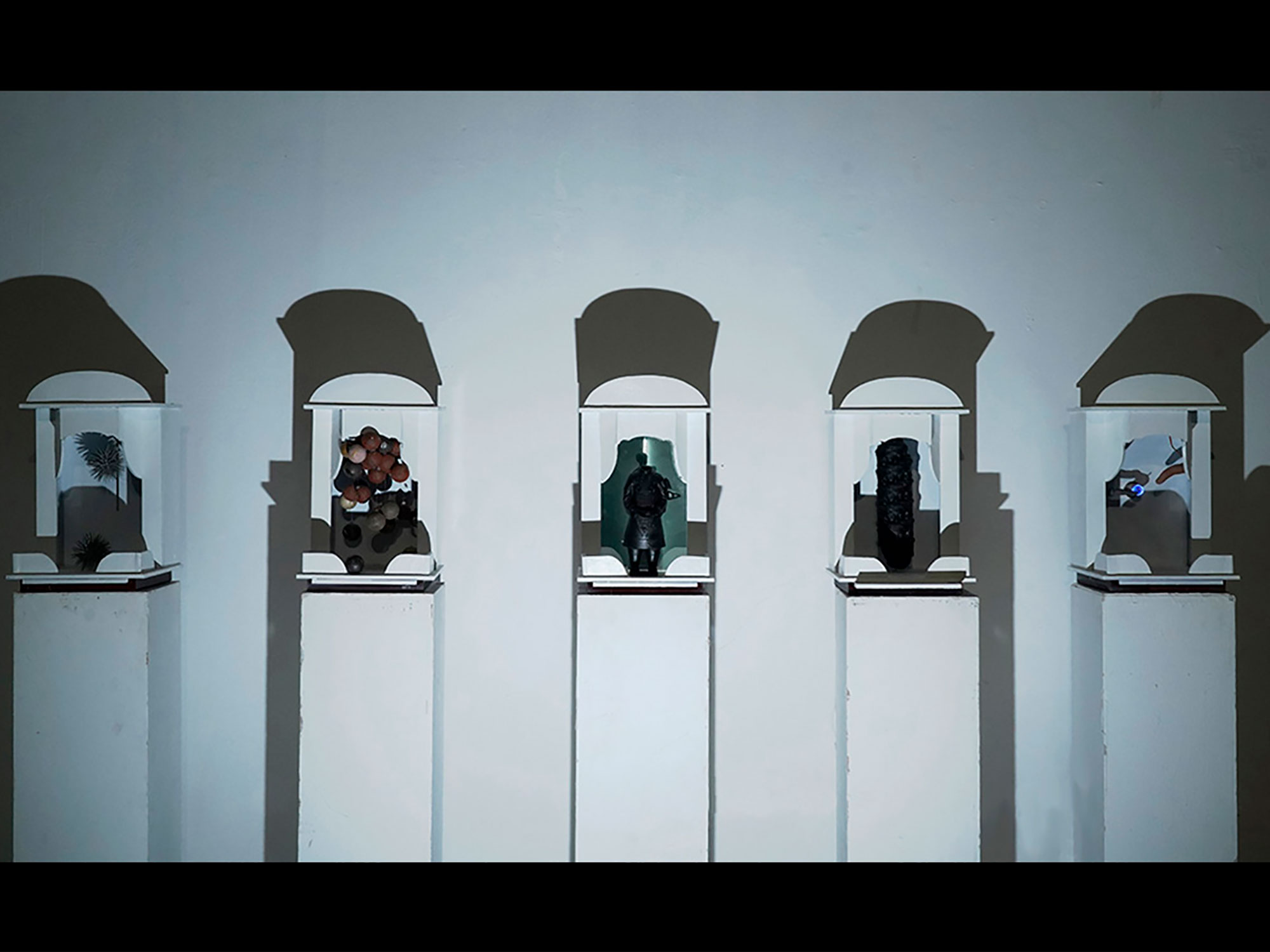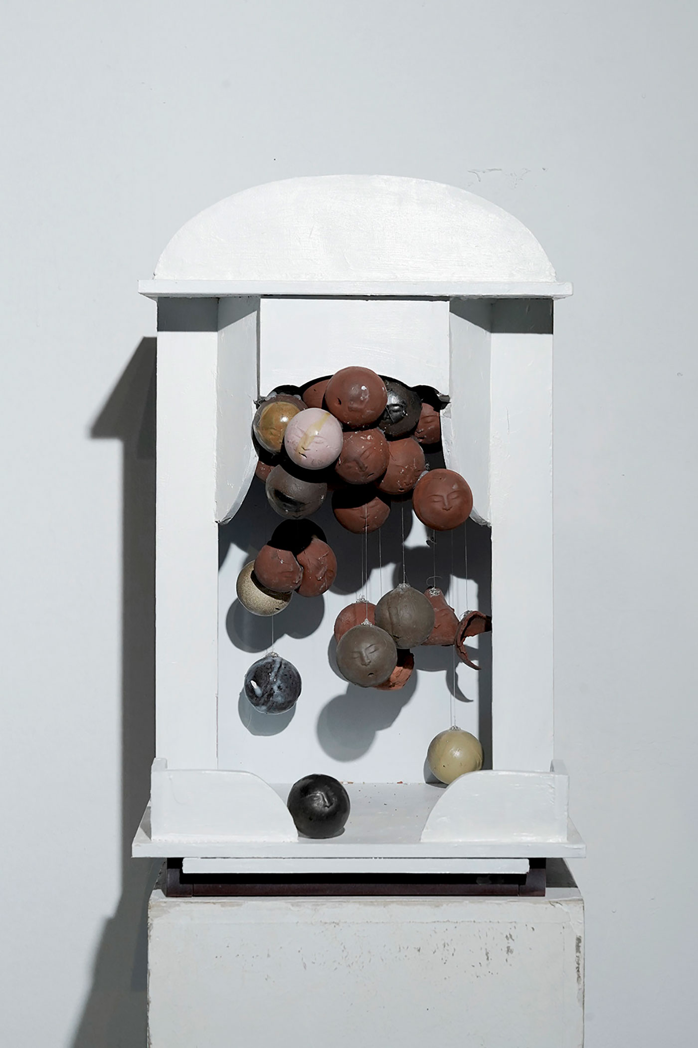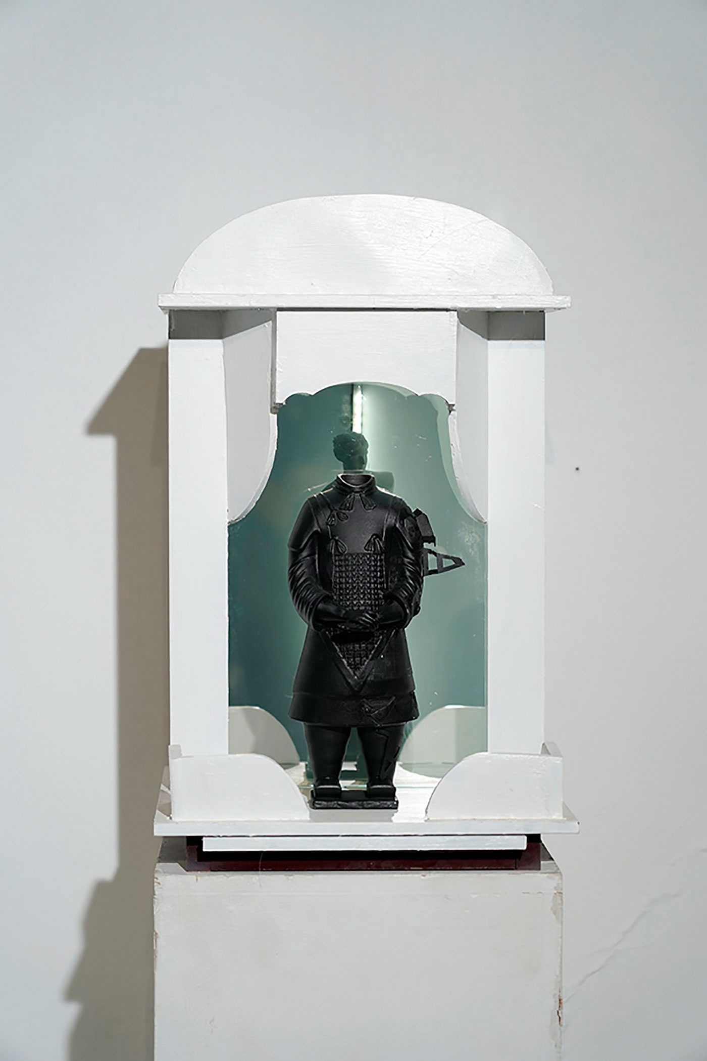 科学技术的飞速发展给我们带来了许多便捷,带给了我们无限的感官刺激,与普通人而言科学越来越神奇,我们的上网的痕迹被记录,行为被大数据分析,普通人在科技面前单向透明,在未来科技会不会异化成如宗教一般。人们一边享受着科技的带来的便利,一边也被科技所带来的强权压迫,甚至人工智能会不会真的获得智能,打破图灵三原则?我很乐观的看待科技的发展,但又不无悲观的揣测我们的未来。于是我想到利用神龛这一个符号来做一些东西。或许在未来的神龛里真的会摆上代表科技的偶像。