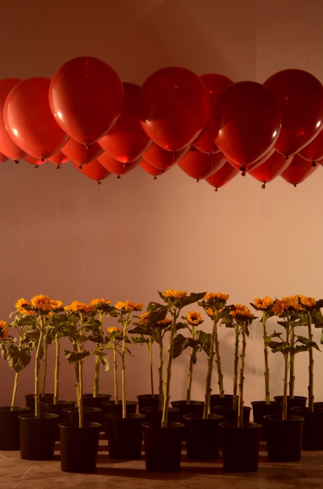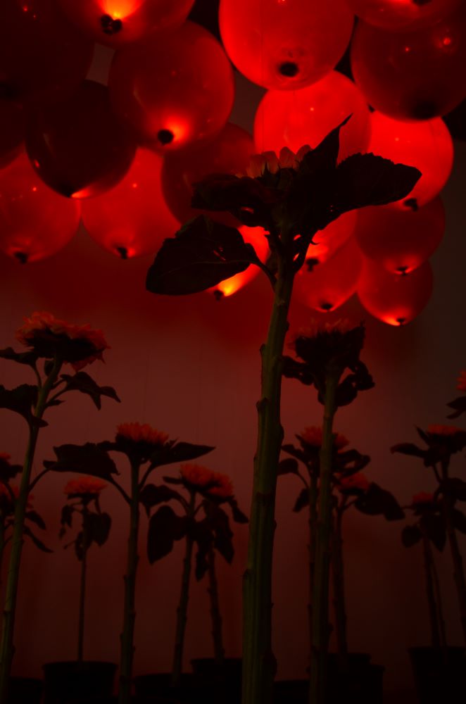 大多数植物都有着向阳而生的特性,在这其中,向日葵则是比较极端的例子。为了获取光合作用所需的能量,向日葵的花盘会从太阳初升的一刻,始终朝向太阳,日复一日直到生命的终点。而如果这颗“太阳”是人为制造的呢?那这种吸引力是否也会被延续。在太阳和向日葵之间的这种力,可以看作是一种无法逃脱的约束,向日葵作为植物,并没有能力抵抗这种人为对其施加的“吸引力”,所以它也只能被动“向阳”。