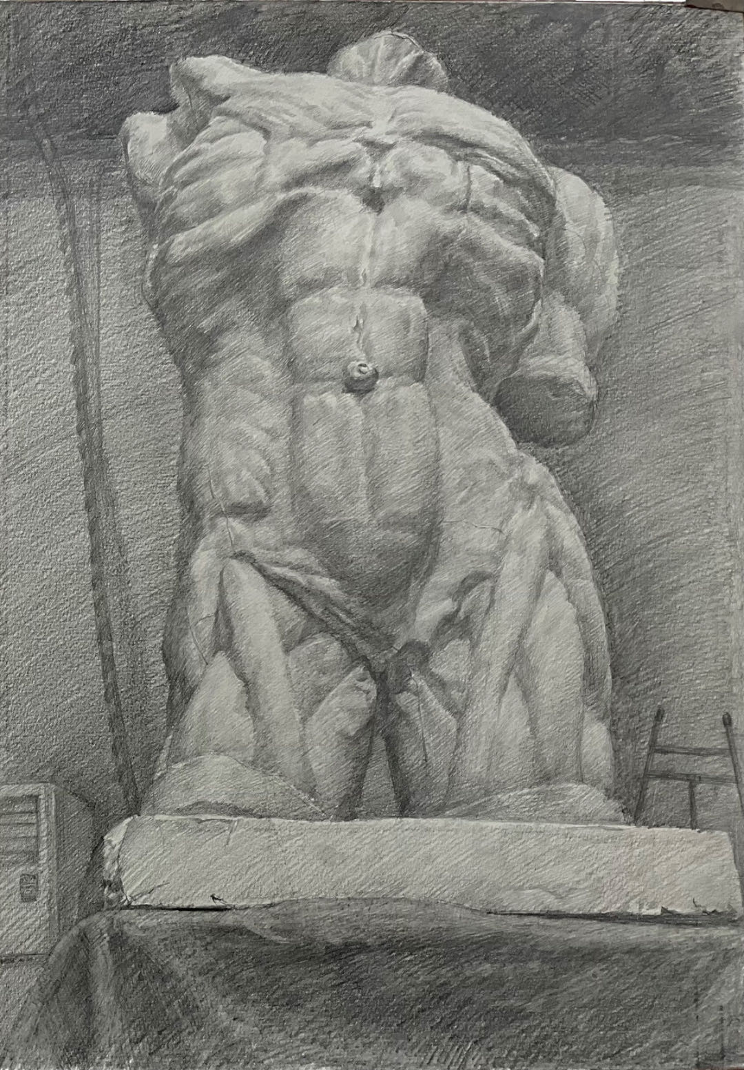 作品介绍:这张作品是对俄罗斯人体的一次写生,通过对其的仰视以及形体刻画,进一步加深对人体的概念与理解。